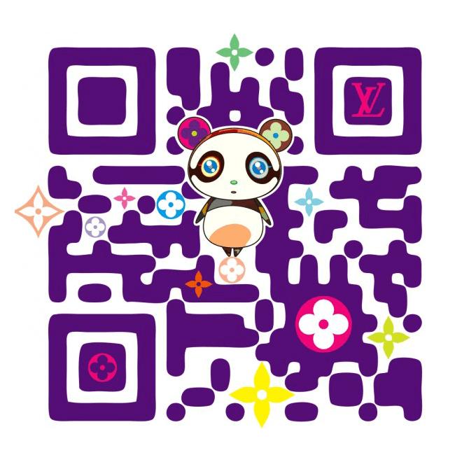 LOUIS VUITTON X TAKASHI MURAKAMI COLLABORATION This QR code was created in 2009 by Takashi Murakami in collaboration with Louis Vuitton and developed with the Tokyo-based agency SET. Originally part of a promotional campaign, it is now recognized as an artwork, demonstrating how utility and art can coexist in luxury marketing. © Louis Vuitton |